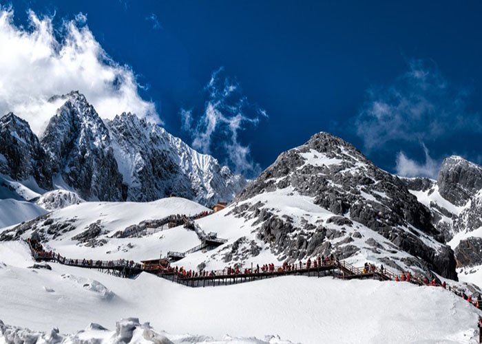 วันที่สี่ ภูเขาหิมะมังกรหยก (นั่งกระเช้าใหญ่ ไป-กลับ)-โชว์จางอี้โหมว IMPRESSION LIJIANG -หุบเขาพระจันทร์สีน้ำเงิน (รวมรถอุทยานและรถกอล์ฟ) - เมืองโบราณไป๋ซา-ร้านกาแฟหยุนตี้อัน